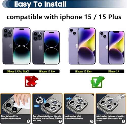 ARROWS - واقي عدسة الكاميرا من اروز، متوافق مع آيفون 15/15 بلس، مصنوعة من زجاج مقوى ماسي عالي الدقة HD مع حلقة من الألومنيوم، واقي لحماية الكاميرا مقاوم للخدش ومضاد للبصمات، لون فضي