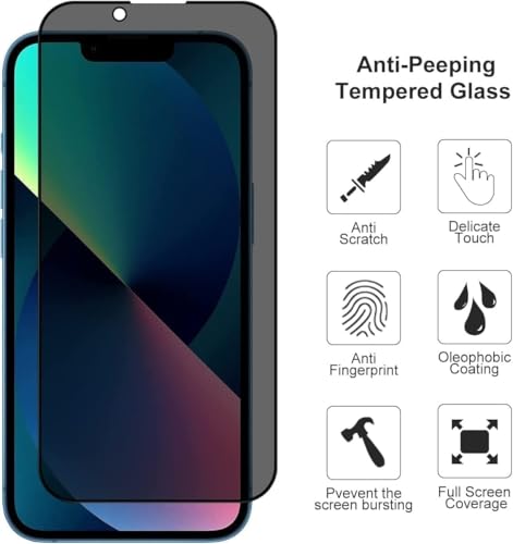 ARROWS - واقي شاشة للخصوصية لموبايل آيفون 13 / آيفون 13 برو، زجاج مقوي مضاد للتجسس، صلابة 9، تغطية كاملة، مضاد للاختلاس، مناسب للجراب، خالي من الفقاعات من اروز