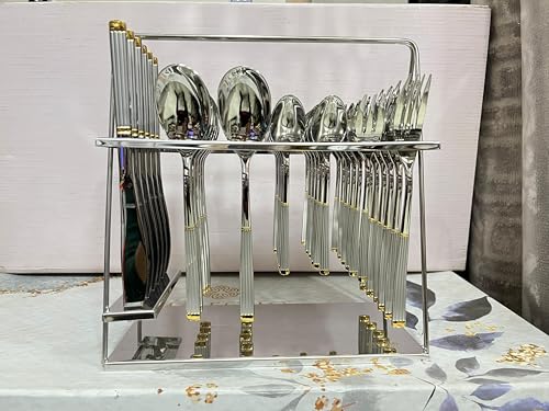 Generic - Arsha Spoons and Knives Set 42Pieces - Silver and golg حامل معالق ارشيا المانى 42 قطعه سلفر جولد
