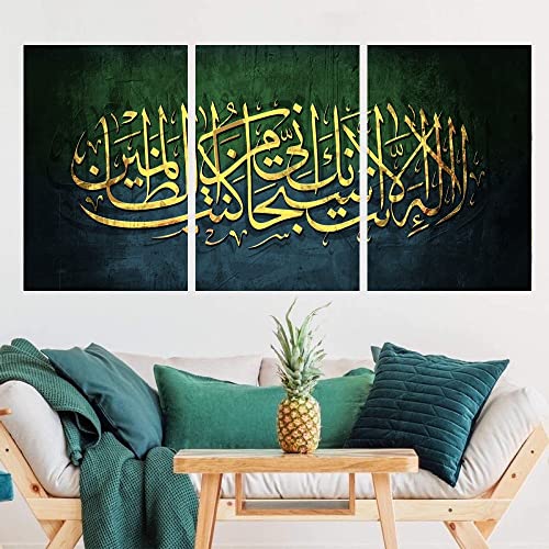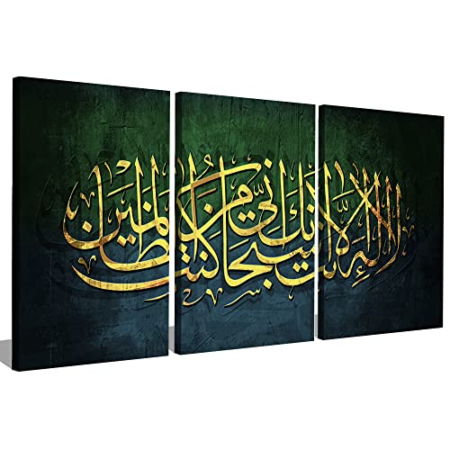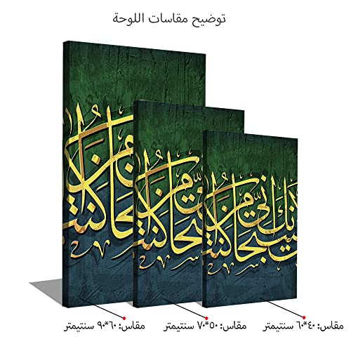 Generic - حبر آرت 3 لوحات من خشب الكانفاس للديكور لا اله الا الله اني كنت من الظالمين 60x90x2 الوان متعددة S3TC6090-0202