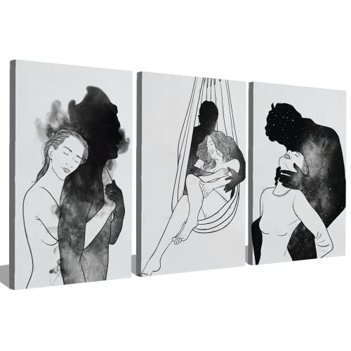 Generic - حبر آرت 3 لوحات من خشب الكانفاس للديكور عشق 40x60x2 الوان متعددة