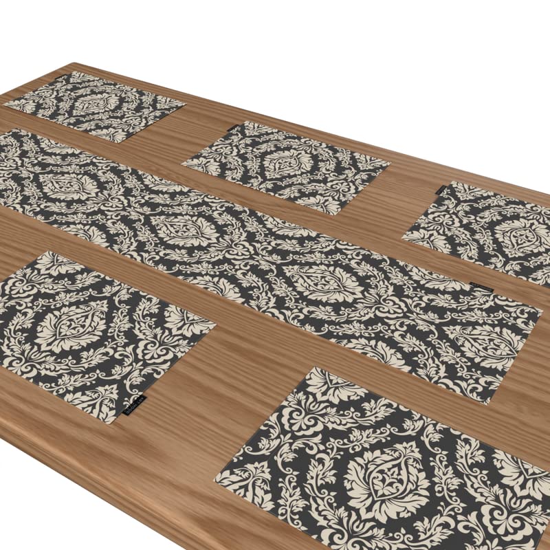 ART MOOD HOME - طقم مفارش أطباق صوفيا من القماش 45 طول × 30 سم عرض من ارت مود هوم، رمادي واوف وايت