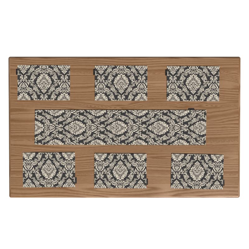 - 6 قطع من مفارش الأطباق بأبعاد 45 طول × 30 سم عرض ومفرش 35 سم طول × 1.40 م عرض
