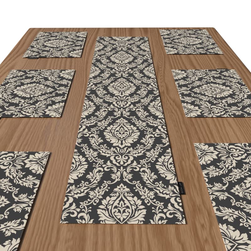 - طقم مفارش للأطباق ومفرش طويل بتصميم جذاب.
