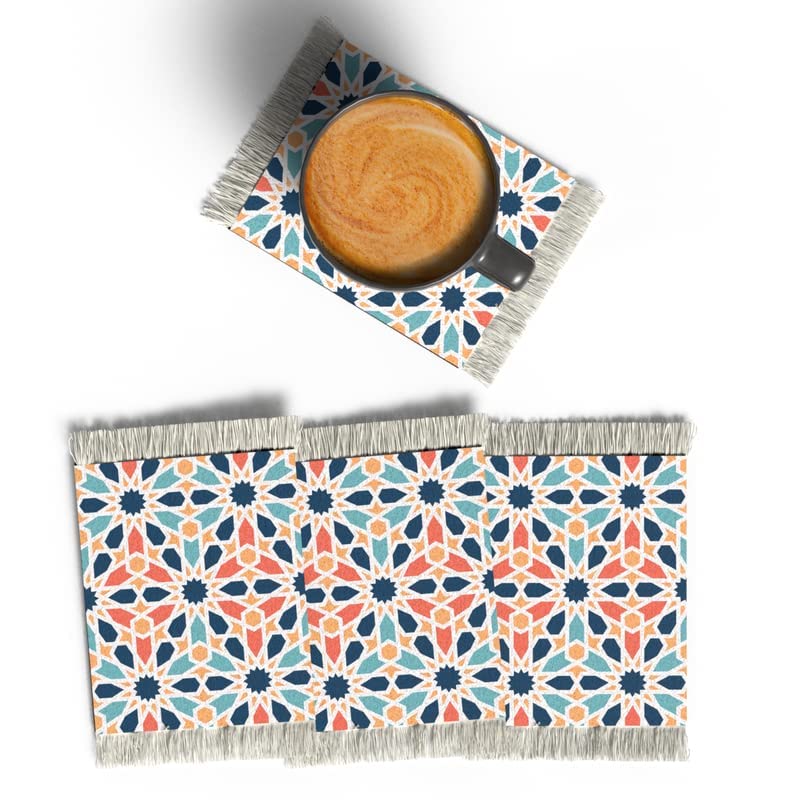 - FUNCTION MEETS STYLE Take your drinkware on a magic carpet ride with our SET OF 4 CUP COASTERS