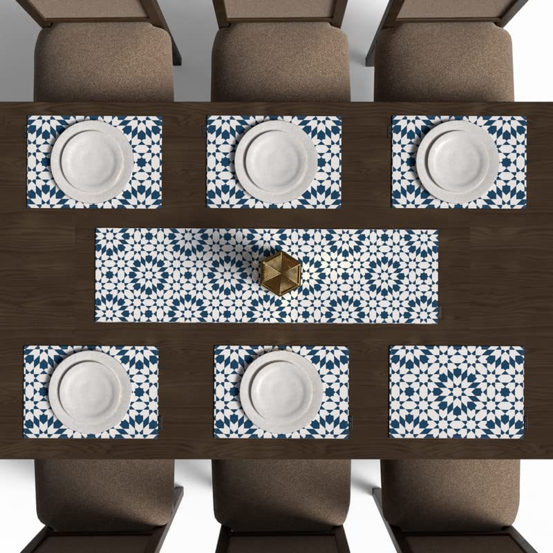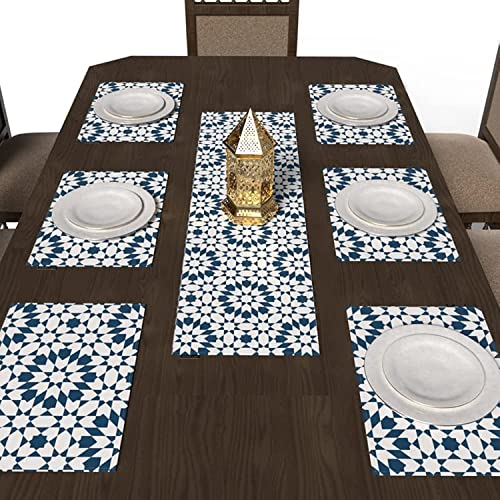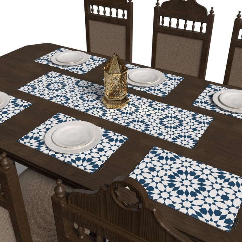 ART MOOD HOME - ART MOOD HOME Islamic Unique Topaz Placemats Set 6 Pieces Of Placemats and Runner In a Wide Range Of Colors Canvas 45x30 and 35x140