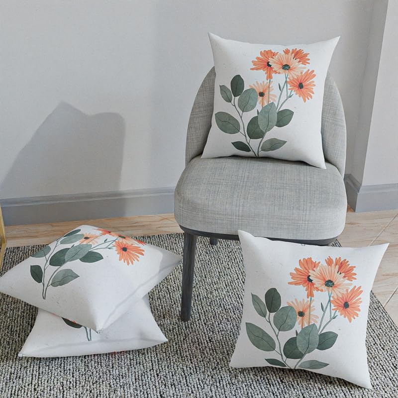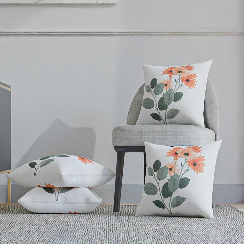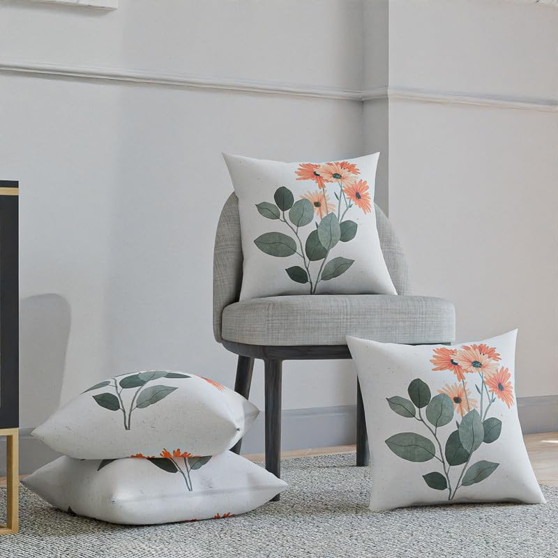 ART MOOD HOME - مخدة لومينا بملمس قطن من آرت مود هوم، لون أبيض × برتقالي × أخضر، مقاس 40 سم عرضا × 40 سم طولا