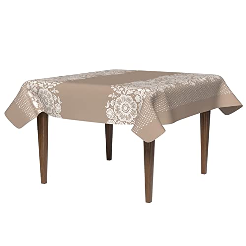 ART MOOD HOME - مفرش سفرة مصنوع من قماش بوليستر مقاوم للماء ارت مود هوم لون بيج × ابيض مقاس 140×140 سم شكل مربع 140L x 140W CM