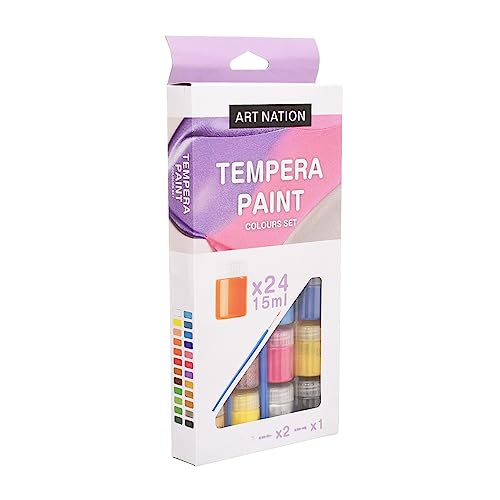 Art Nation - Art Nation T2415 Tempera Paint Pack of 24 Jars with 2 Brushes 15ml - Multi Color