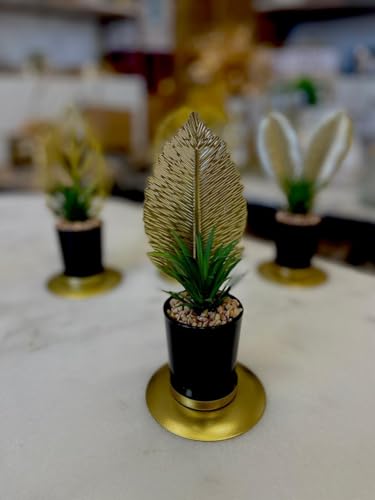Generic - نبات صناعي مع حامل معدني لتزيين المنزل والمكتب من فلامينجو - الشكل 1، ذهبي