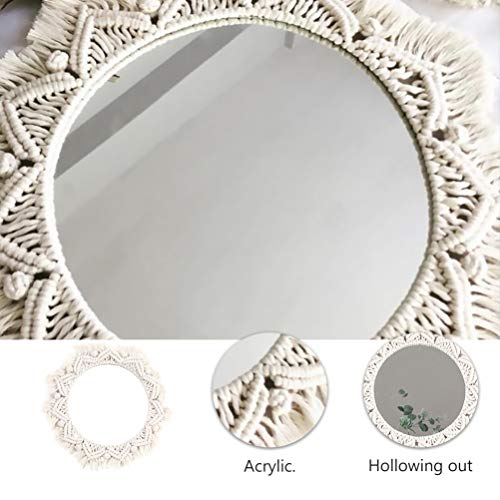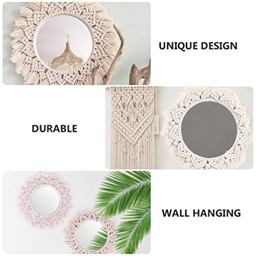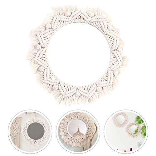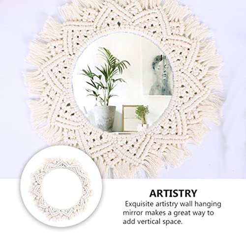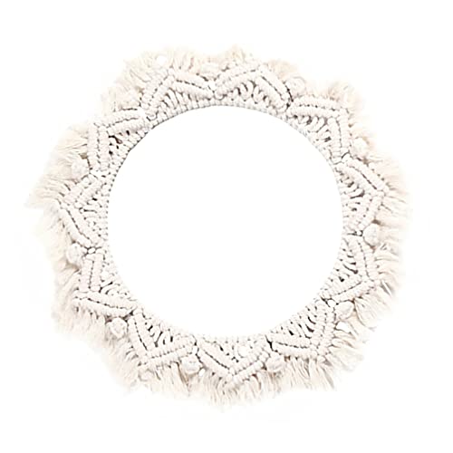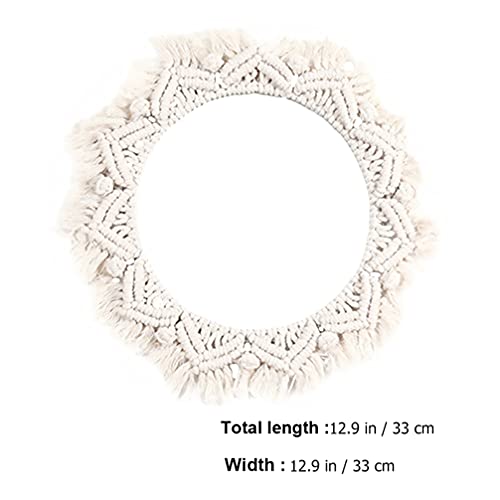ARTIBETTER - ARTIBETTER Woven Tapestry Wall Macrame Mirror Hanging Tapestry Vanity Mirror Fringe Round Decorative Mirror Hanging Macrame Tapestry for Apartment Living Room Bedroom Wall Decor Mirror Trim