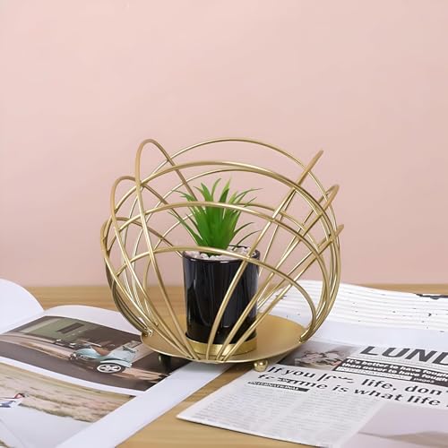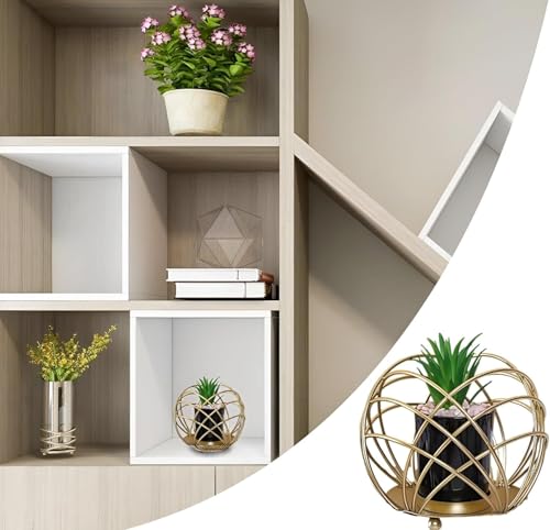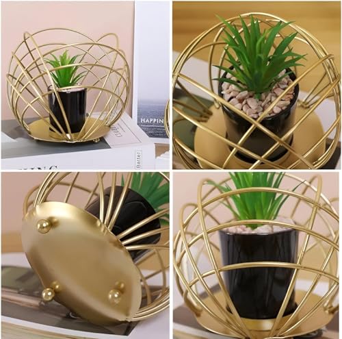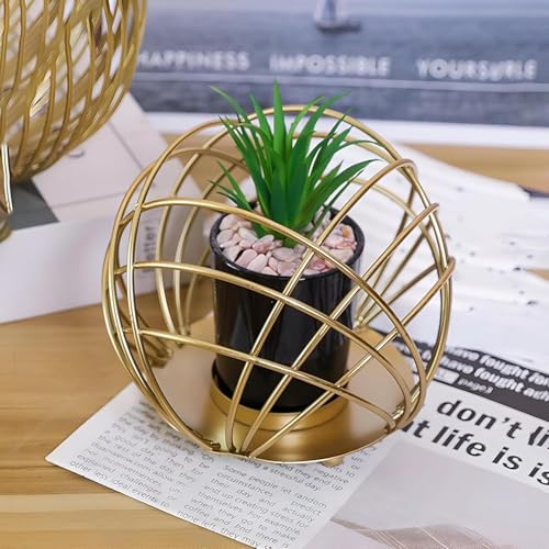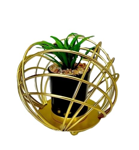 Generic - نبات صبار صناعي مع حامل كروي هندسي ذهبي، نبات ديكور عصري للمنزل والمكتب (قطعة واحدة 14 سم)