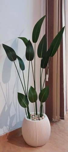 Generic - Artificial Banana Plant, 150cm, 10 Leaves, with White Acrylic Striped Pot, Home and Office Decor