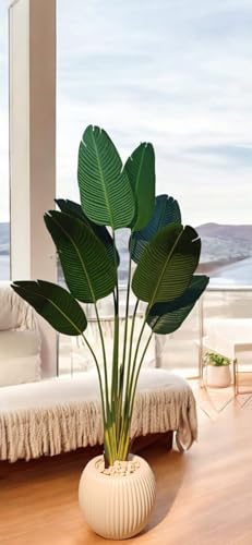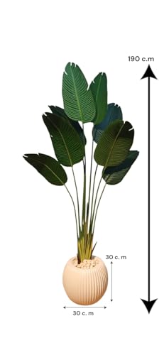 Generic - Artificial Banana Tree for Indoor and Outdoor Decoration, 190 cm, Jeans Green Leaves, White Pot, Suitable for Homes, Offices and Companies