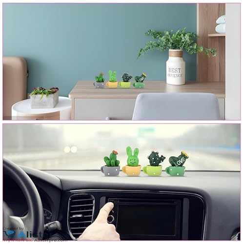 Generic - Artificial Cactus - Upgrade Your Car Dashboard Decor with Unique Plant Designs Perfect for Home and Office Use, Multiple Colors and Patterns! (4 Pack)