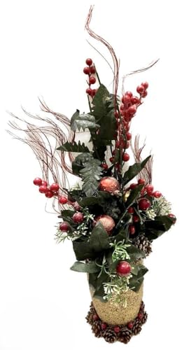 generic - Artificial Christmas Arrangement with Red Berries, Pine Cones, Green Holly Leaves, Winter Holiday Centerpiece in Gold Base