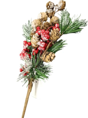 generic - اعواد صناعية للكريسماس مع مخاريط الصنوبر والتوت الاحمر وفروع الصنوبر المغطاة بالثلوج، جذع زهور للعطلات 45 سم لحفلات الزفاف والكريسماس والهالوين
