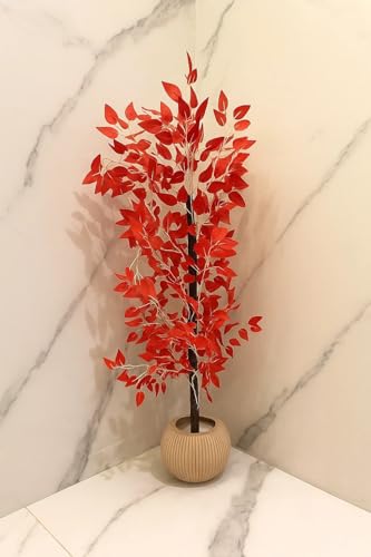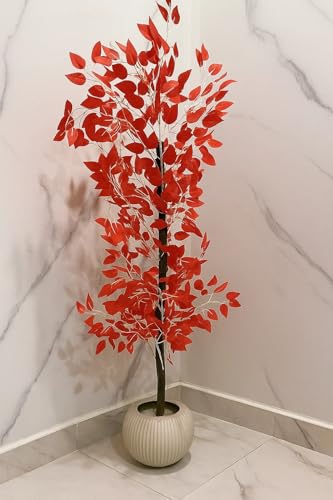 Generic - Artificial Decorative Tree with Dense Leaves in Elegant Pot for Home Office Decoration 120cm (red)