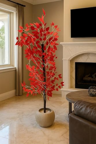 - High quality synthetic and realistic looking tree Thick leaves leave feeling energized and refreshed. Stylish pot is ready to display with no additional preparation required Suitable for living room, office, hallway, and hotels. No repeated maintenance or care required.