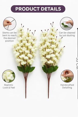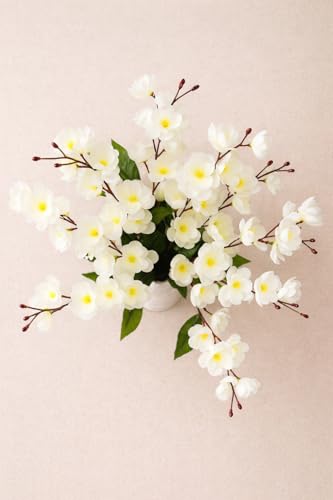 Generic - Artificial Flowers for Decor, Cherry Blossom Bouquet for Vase, Home Decor, No Vase, Combo (White, Pack of 2)