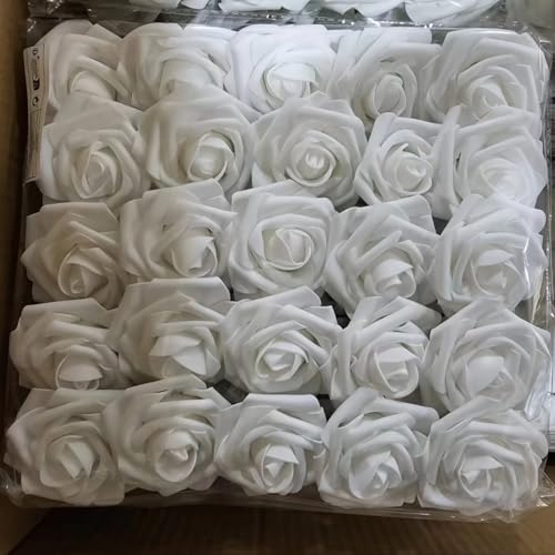 Generic - Artificial Flowers Premium Foam Flowers Natural Look Romantic for Event Wedding Birthday Party Decoration – Elegant Home Table Decor (50, ROZ) White
