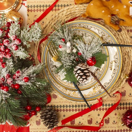 - Festive Decor: Includes 6 artificial pine picks featuring red berries, pinecones, and holly leaves for a vibrant holiday look.