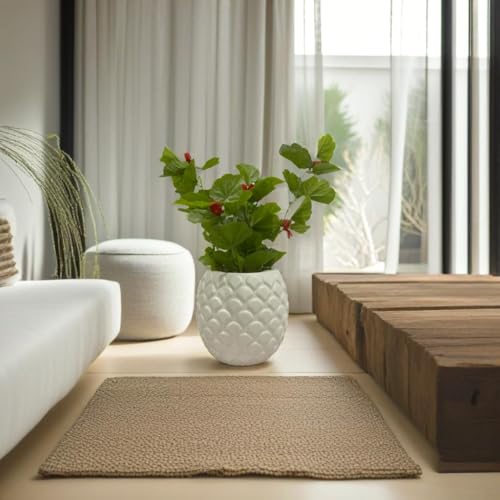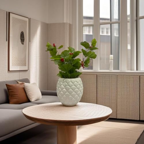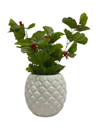 Generic - نبات زينة صناعي بأوراق خضراء مع زهور حمراء في أصيص سيراميك أبيض مزخرف للديكور المنزلي
