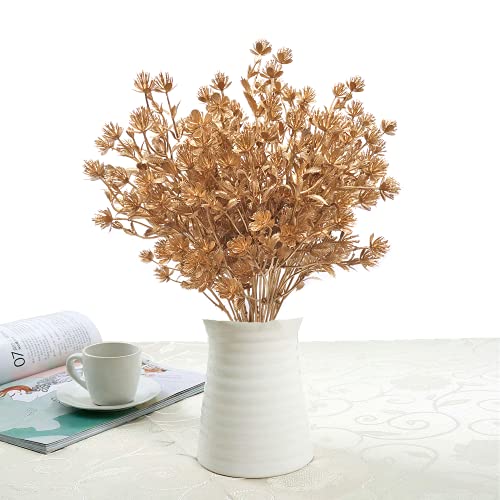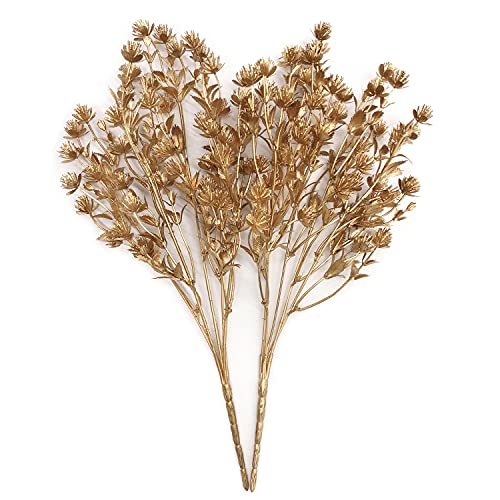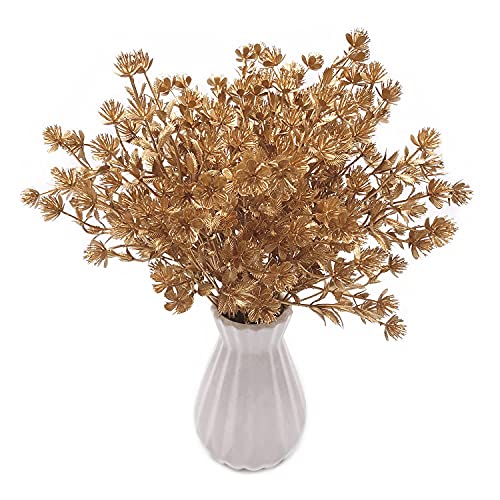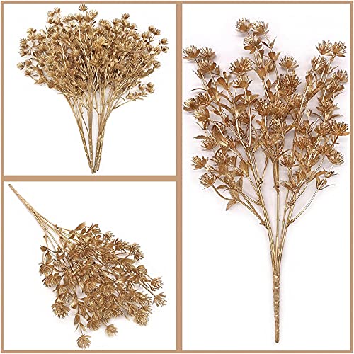 MASUMARK SM - نباتات صناعية، نبتة نفس الطفل الجيبسوفيليا لتزيين الكريسماس، نبتة صناعية اعشاب سرخسية للزينة، شجيرات صناعية خضراء للاماكن الداخلية والخارجية، حوض زهور لتزيين المهرجانات والمنزل والحديقة، ذهبي، قطعتان