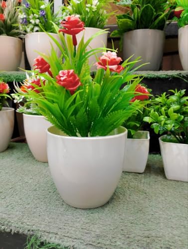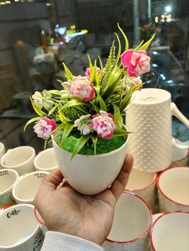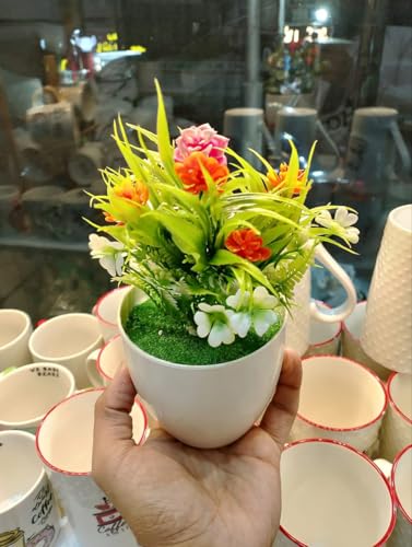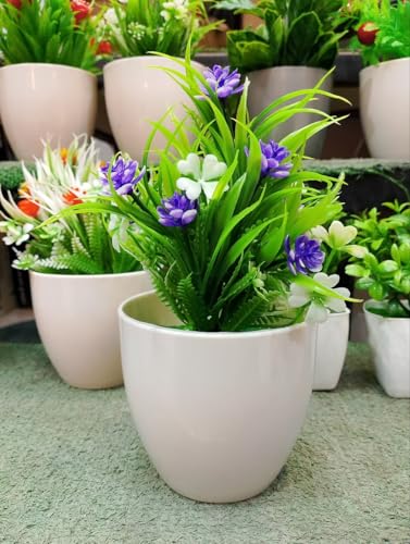 Generic - Artificial Potted Plant with Purple Flowers and White Blossoms, Decorative Faux Greenery in White Ceramic Pot