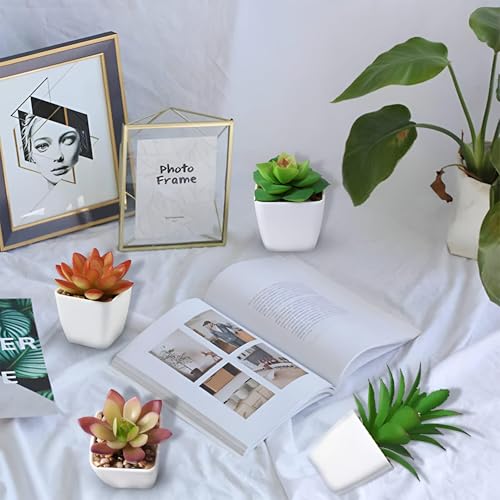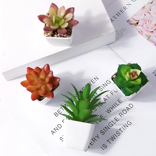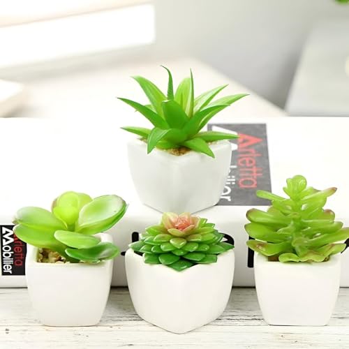 Generic - نباتات عصارية صناعية - نباتات صناعية صغيرة 7 سم في اوعية بلاستيكية صلبة، ديكور داخلي واقعي للغاية ومقاوم للصدمات لأماكن العمل والمنازل (4 قطع)