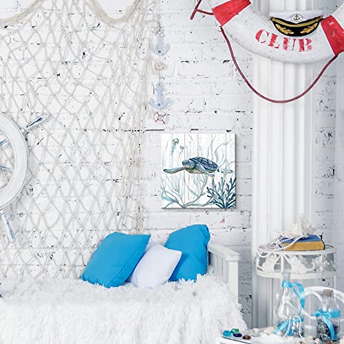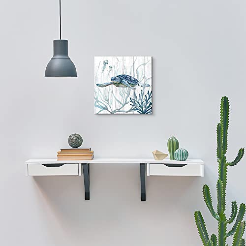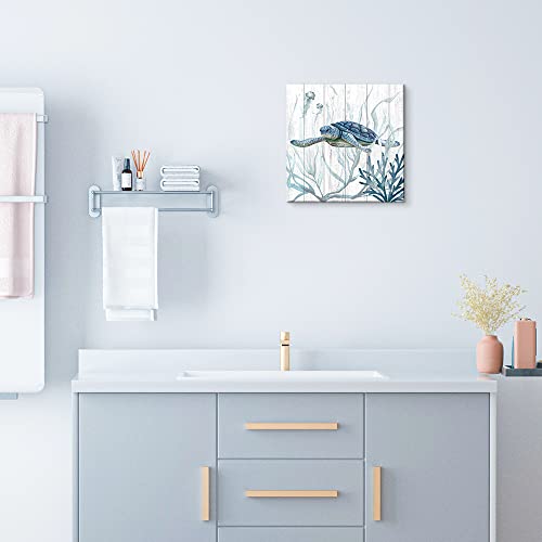 ARTINME - ARTINME Turtle Canvas Wall Art for Bathroom, Ocean Beach Coastal Theme Wall Decor, Animal Pictures for Wall Decoration,12X12 Inch A