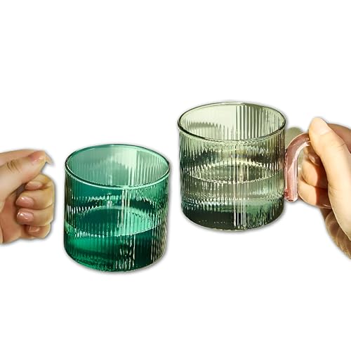 Generic - مج حرفي - كوب زجاجي مصنوع يدويًا مع خطوط عمودية دقيقة تعكس الضوء بطريقة سحرية، معزز بمقبض شفاف او ملون يجلب السحر والراحة في لحظات المشروبات اليومية (قطعتين)
