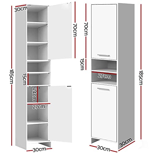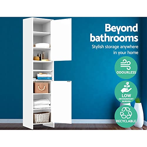 Artiss - Artiss Bathroom Storage Cabinet, 185cm Tall Adjustable Cupboard Side Table Corner Shelf Wall Over Toilet Roll Storages Cabinets Unit Home Furniture Organiser, with Magnetic Doors Space Saving White