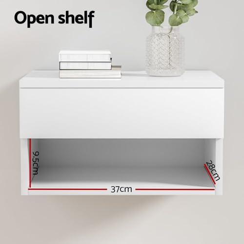Artiss - طاولة بجانب السرير بدرج عائم وخزانة تخزين جانبية من ارتيس، ابيض