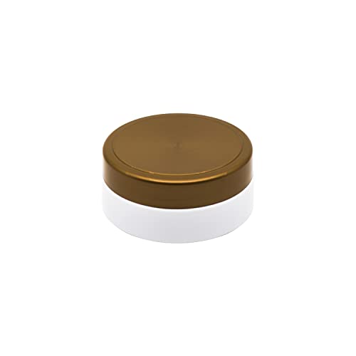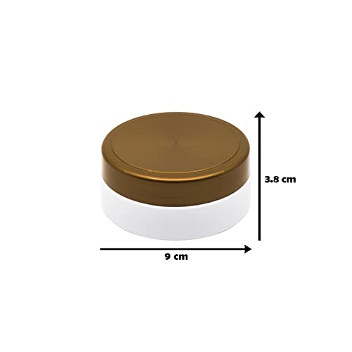 Artistic - Artistic 8 Pieces Bright White Plastic Jar 150 ml - 9 Ct Diameter - Frosted Gold Lid and Plastic Medicine - High Quality Plastic Empty for Round Jar Packaging - by Funi (White and Gold Pop Lid)