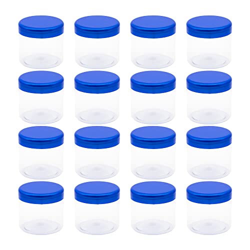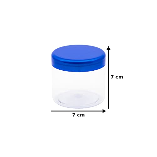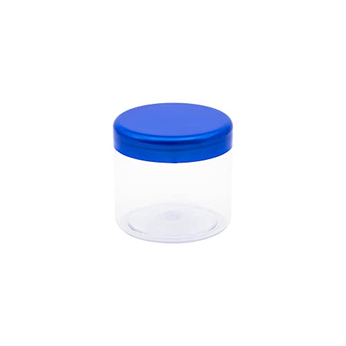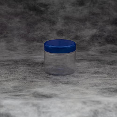 Artistic - مجموعة برطمانات بلاستيك بيضاء شفافة صحية بقطر 17.8 سم وغطاء ازرق ناعم من طبي قابلة لاعادة التعبئة والتخزين فنوني - 8 قطع - سعة 200 مل غطاء