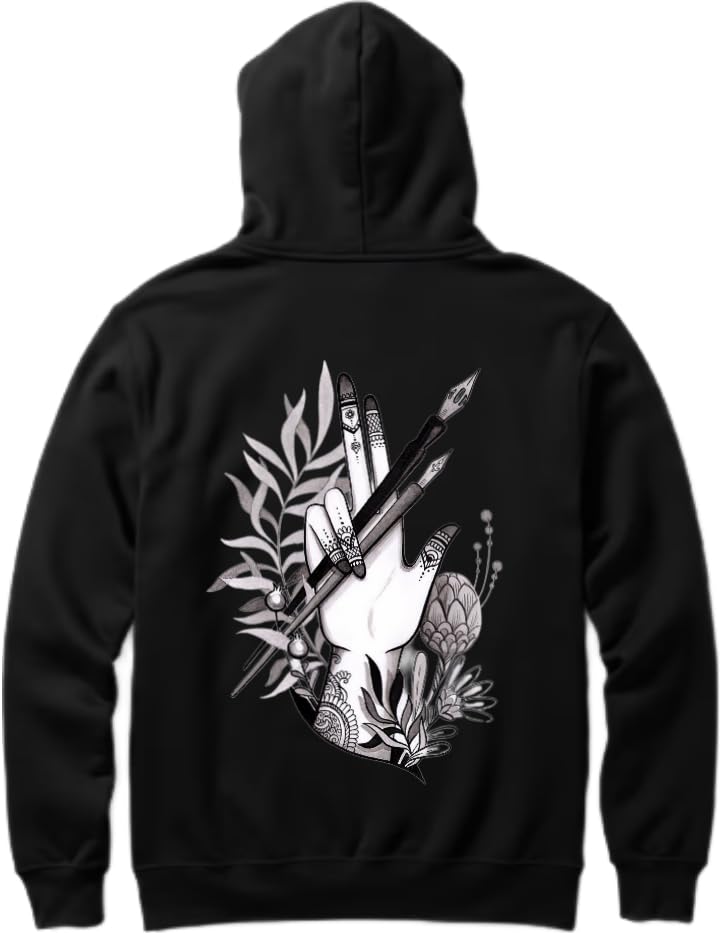 Generic - Artistic Hands Botanical Print كنزة ذات قبعة من الخلف أسود