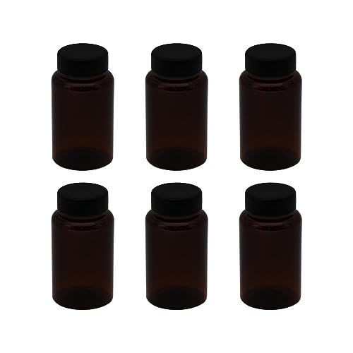 artistic - 6 زجاجات بلاستيكية بنية شفافة بغطاء حلزوني فارغ لجميع الاغراض مانعة للتسرب وفائقة النقاء 135 مل ادوية معقمة قابلة لاعادة الملء غطاء اسود من فنوني