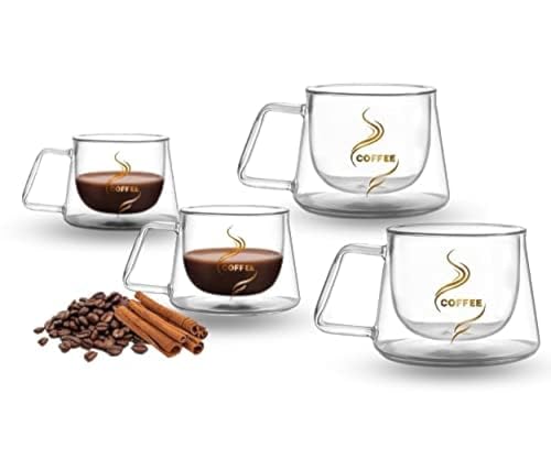 - ارتقِ بشرب القهوة والشاي إلى المستوى التالي مع أكواب الإسبريسو المزدوجة هذه! تأتي مجموعة أكواب الشرب الخاصة بنا مع 4 أكواب سعة 6 اونصة سائلة (180 مل) ومقبض لسهولة الحمل، حتى تتمكن من حملها بشكل مريح أثناء العمل أو التنقل. استمتع بقهوتك كما كان من المفترض أن تكون مع ارت اولو. مجموعة أكواب القهوة الزجاجية المعزولة مزدوجة الجدران هذه ليست أنيقة فقط ولكنها عملية. أكواب اسبريسو أو أكواب كابتشينو أو كوب شاي أو كوب بيرة - ستتمكن من استخدامها لأي شيء تريده.