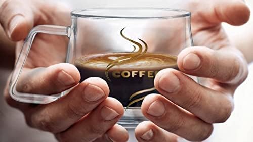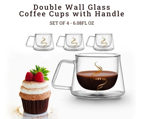 ArtOlo - اكواب اسبريسو زجاجية مزدوجة الجدار مع مقبض كوب مقاوم للحرارة والبرودة منفوخة يدويا سهلة التنظيف متينة 6.7 اونصة سائلة 4 قطع شفاف