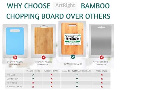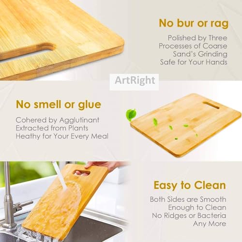 - ✔ [100% FOOD SAFE ] - ArtRight bamboo cutting board is made from high quality, top-grade, eco-friendly bamboo tree, 100% BPA-free & doesn’t contain any chemicals or toxic elements.