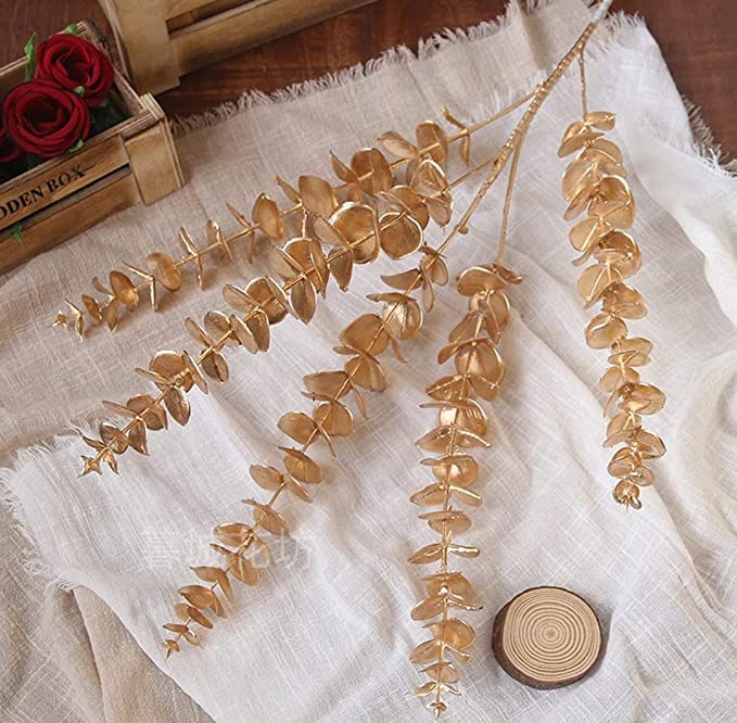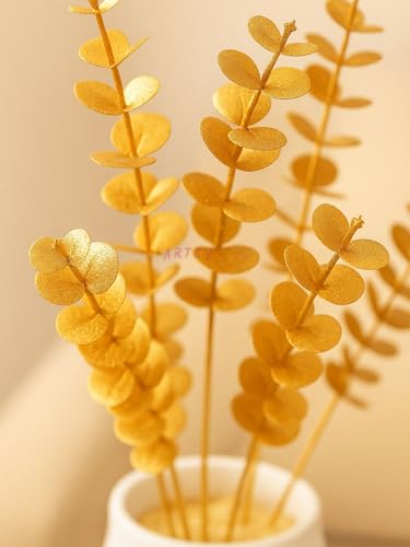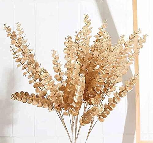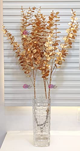 ARTSY - ARTSY® Artificial Flower for Home Decoration Flower Bunch Long Size Stick Stem Eucalyptus Gingko Leaves Fake Plants Branches, Without Vase, 1 Piece, Golden