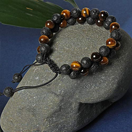 ARZASGO - Men Women 7 Chakra Natural Gemstone Beads Bracelet Colorful Crystal Lava Rock Stretch Wrist Bracelets for Yoga Meditation Prayer Healing Protection, crystal, crystal,