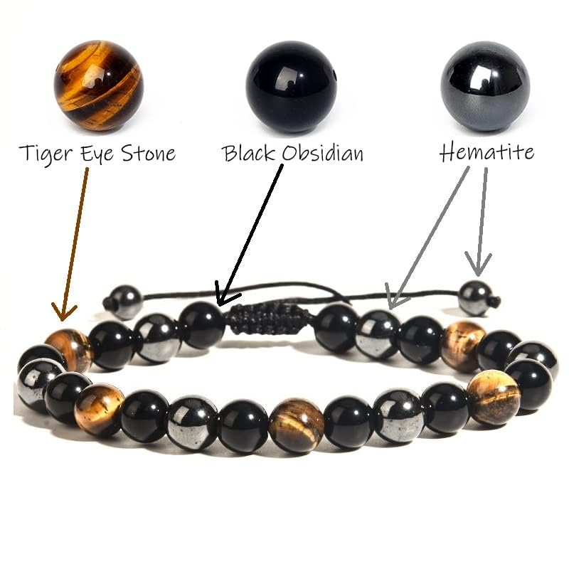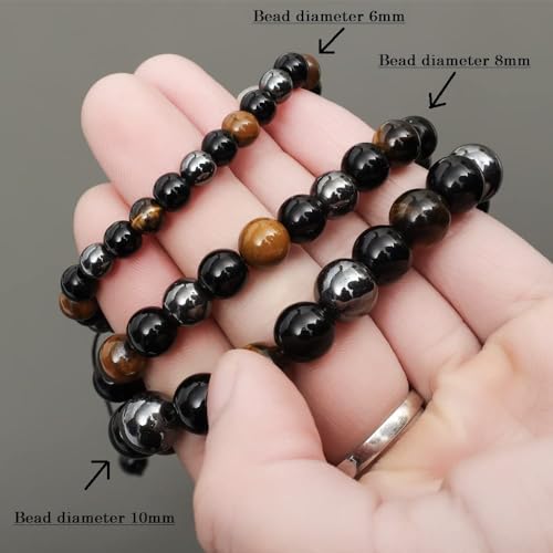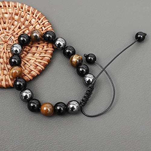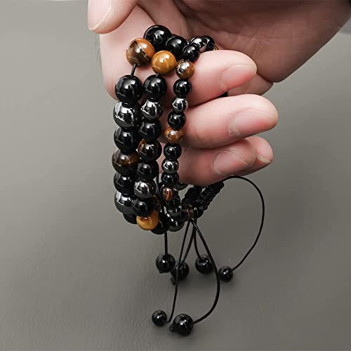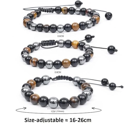 ASADA - سوار خرز من اسادا حجر عين النمر وخرز زجاج بركاني اسود حبل مضفر قابل للتعديل مجوهرات علاجي مصنوع يدويا للرجال والنساء قطر الخرزة 6 ملم
