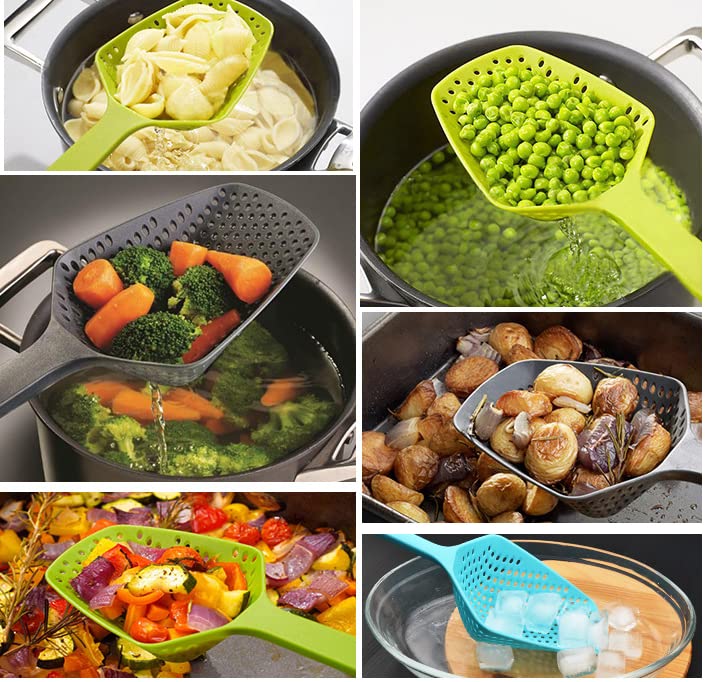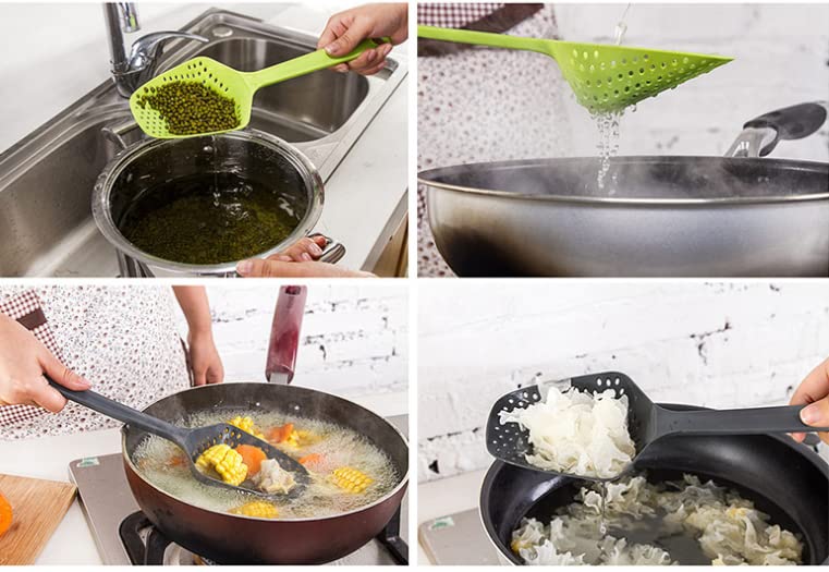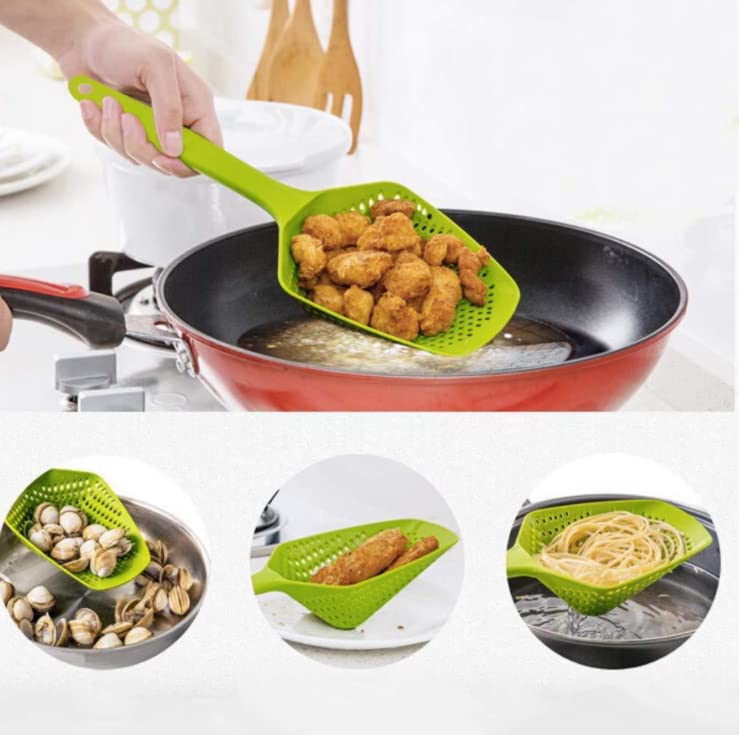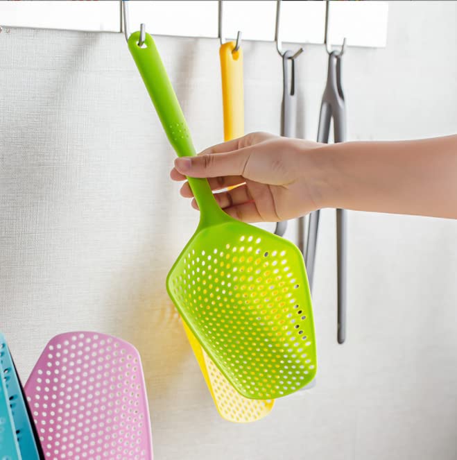 ASEANAO - ASEANAO Kitchen Nylon Strainer Scoop Colander, Skimmer Spoon with Long Handle, Drain Shovel Strainers, Water Leaking Shovels Ice Shovel Colanders (White)
