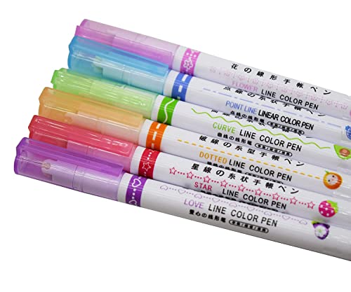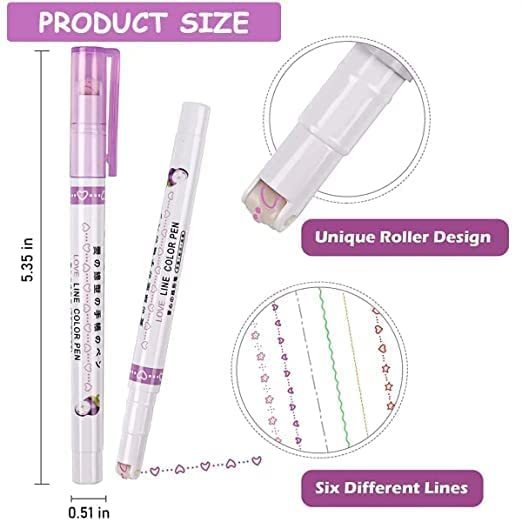 - 6 أقلام دوارة منحنية ملونة رائعة. هناك 6 منحنيات متعددة الألوان في 6 أشكال مختلفة. الألوان باللون الوردي/ الأزرق/ الأخضر/ البرتقالي/ الأرجواني/ الأحمر، تأتي بأشكال قلب الحب/ نجمة/ زهرة/ خط متموج/ خط منقط/ خط نقطي.
