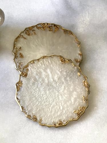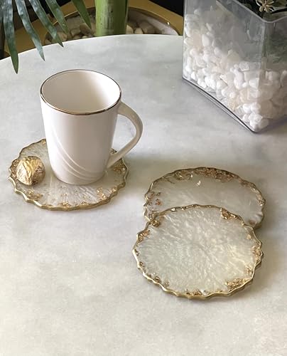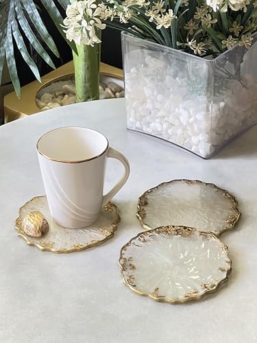 Generic - طقم قواعد اكواب من الراتنج من اشا - مجموعة من 3 قواعد اكواب - ذهبي واوف وايت - مجموعة هدايا فاخرة - طقم كوستر هاند ميد