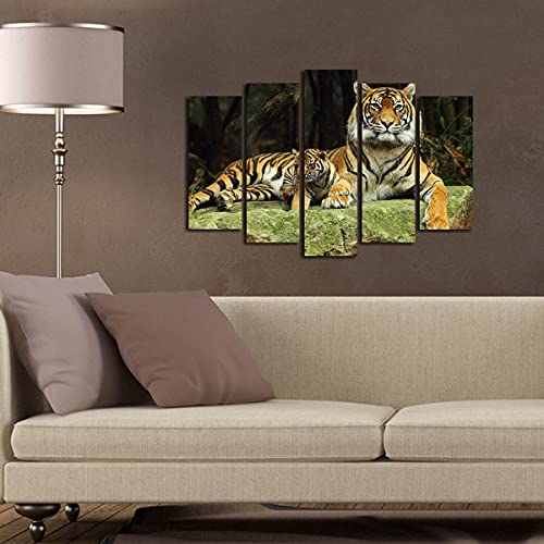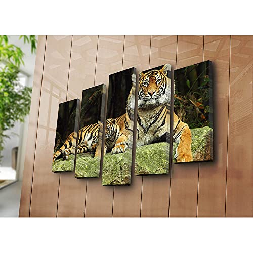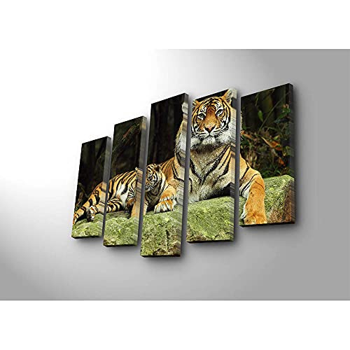 Asir Group LLC - Decorative 5NATPAT-38 Mixed Media 5 Piece Canvas Painting Set - Animals