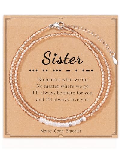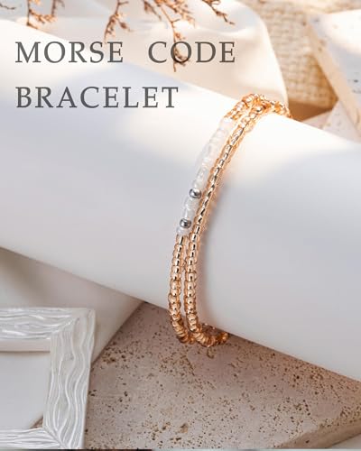 ASKRAIN - Morse Code Bracelets for Women, Inspirational Funny Bead Wrap Bracelets Gifts for Best Friends Sister Her Women Female