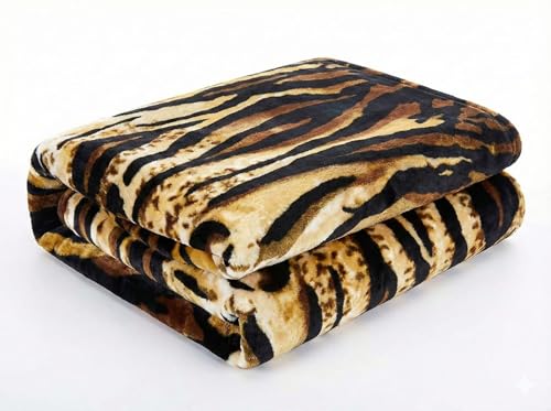 Generic - Aslan Blanket 2 Layers High Warmth, Tiger Patterns, 220x240cm, 6K, Velvet Fabric, Brown
